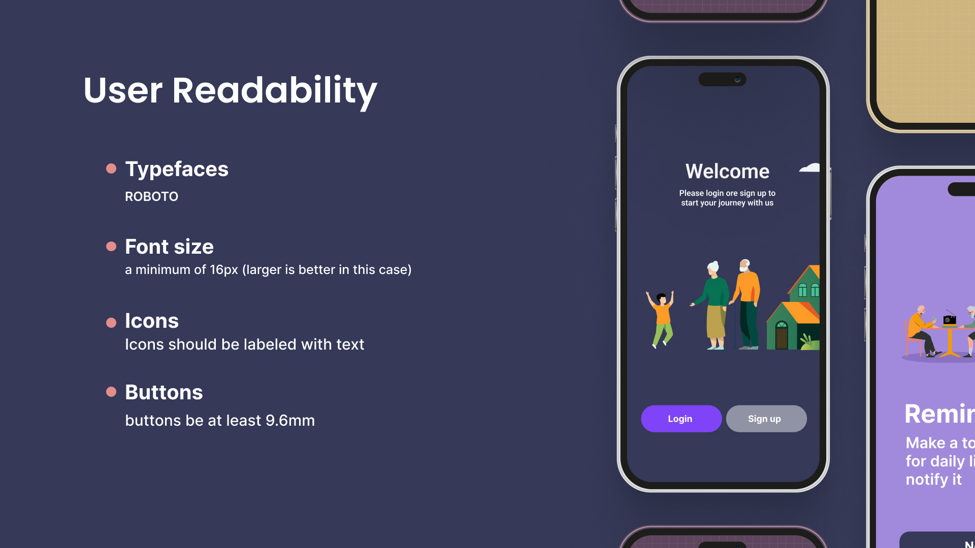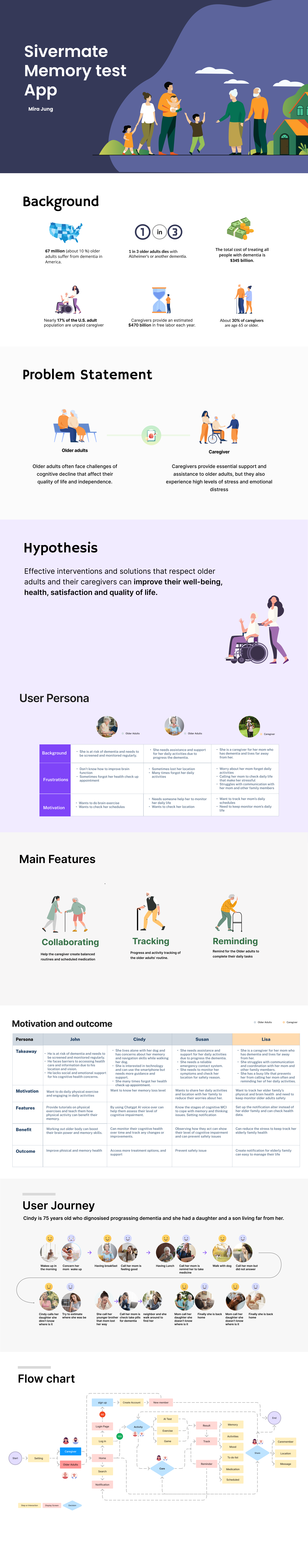 This poster served as a foundational tool for our subsequent UI/UX design work. It ensured that our design decisions were well-informed and directly addressed the challenges and needs identified through our research on cognitive decline. By grounding our project in solid research and clear communication, we set the stage for a design process that was both empathetic and effective.